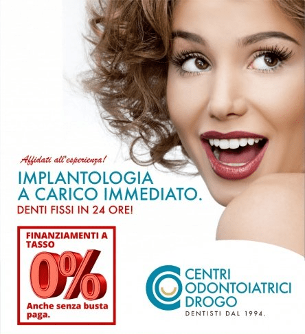 Centri Odontoiatrici Drogo aperti dal 1994 si occupa della salute e della bellezza dei tuoi denti mettendoti a disposizione trattamenti specifici eseguiti da un ottimo team composto da medici costantemente aggiornati. I nostri Centri Odontoiatrici propongono numerose prestazioni che permettono non solo di ripristinare la bellezza dell’arcata dentale, ma anche la sua funzionalità nella masticazione e nel linguaggio.